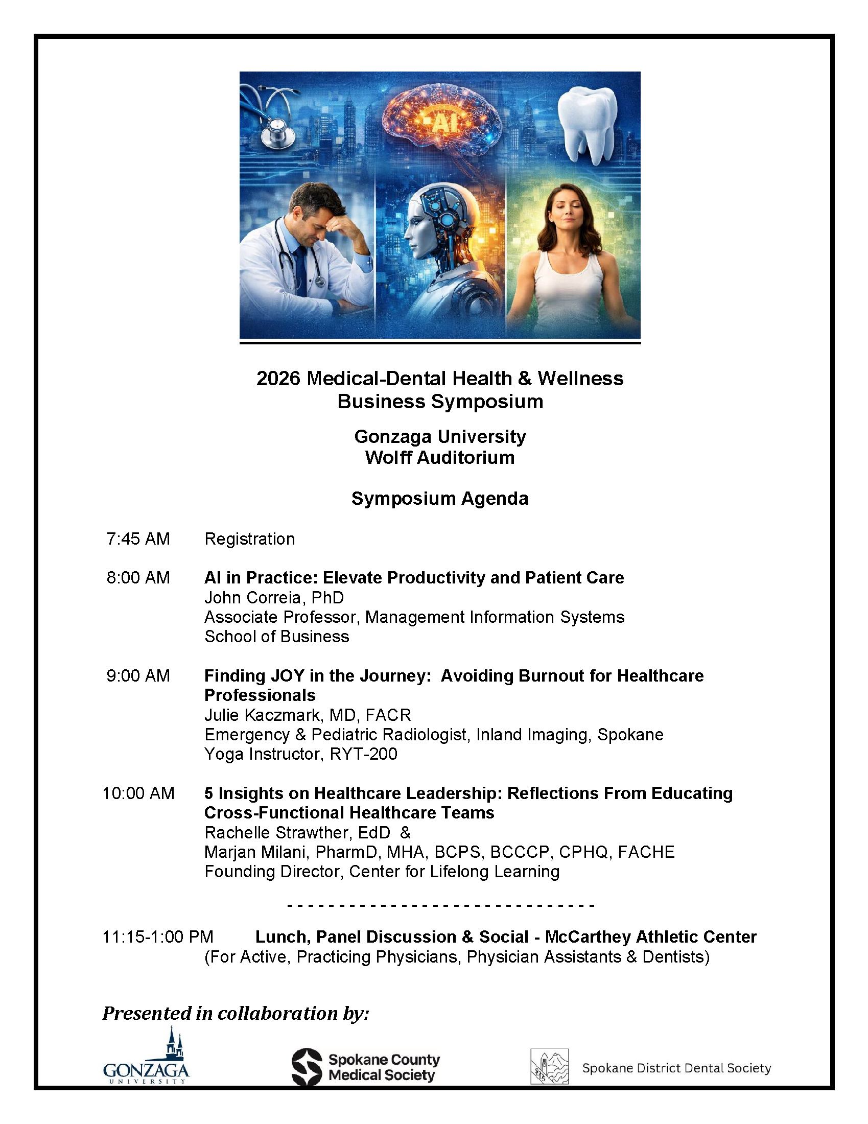 Medical-Dental Health & Wellness Symposium, presented in collaboration with the Spokane District Dental Society, Gonzaga University and Spokane County Medical Society.